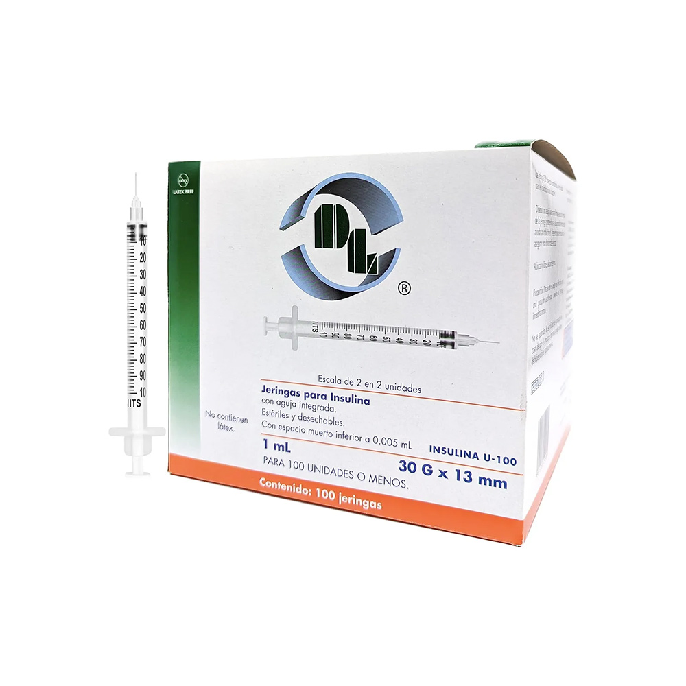 - De un solo cuerpo (UNIBODY) 1 ml con aguja 30G X 13 mm